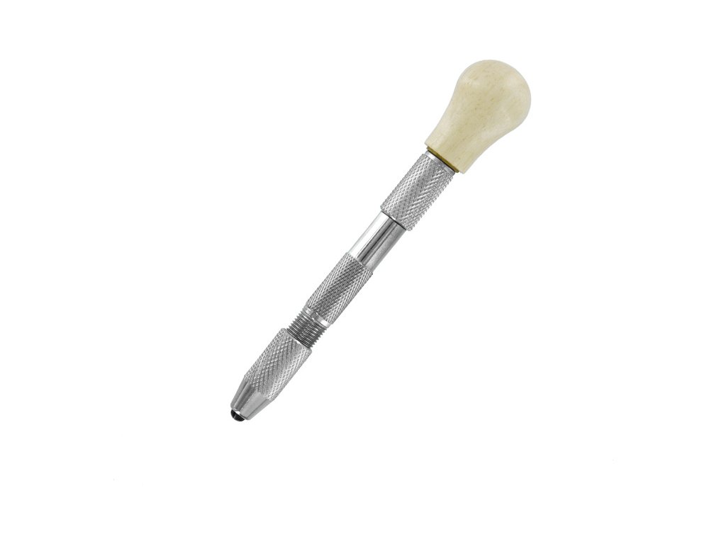 Modelcraft mini ruční vrtačka s otočnou hlavicí pro přesné vrtání. Upínací kleštiny 0-1,2 mm, & 1,3-2,4 mm a 0,8-2,0 mm, & 1,8-2,9 mm. Otočná dřevěná rukojeť pro pohodlou práci. Délka 110mm, hlavice průměr 20mm.