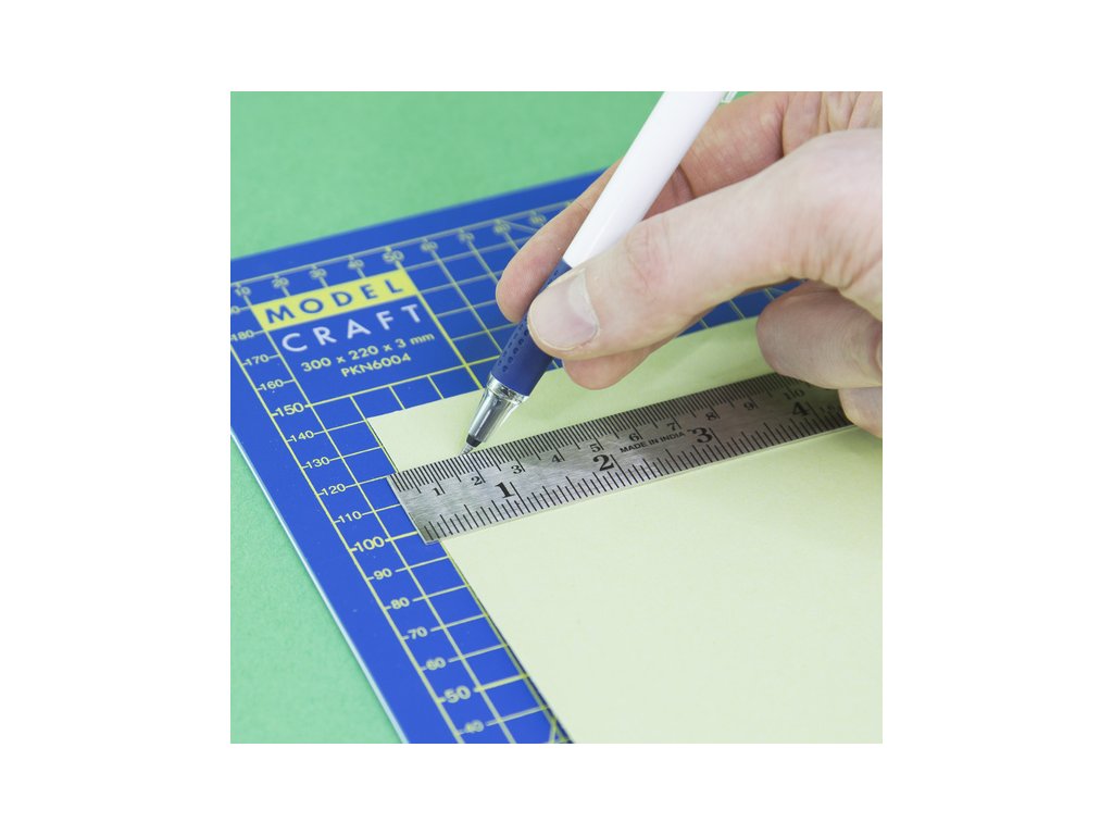 Modelcraft mini vyřezávací nůž je speciální nástroj pro složité, detailní řezání křivek a tvarů v papíru, fóliích a plastu. Rukojeť ve stylu pera s měkkou gumovou rukojetí pro pohodlné držení. Balené obsahuje 2 náhradní čepele.