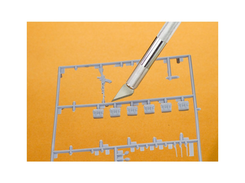 Modelcraft modelářský nůž střední velikost #2, s čepelí #2. Rukojeť z hliníku o délce 125mm. Ideální pro práci v úzkých prostorách při práci se dřevem, plastem či papírem. Celková délka 149mm, průměr 11mm, hmotnost 28g.