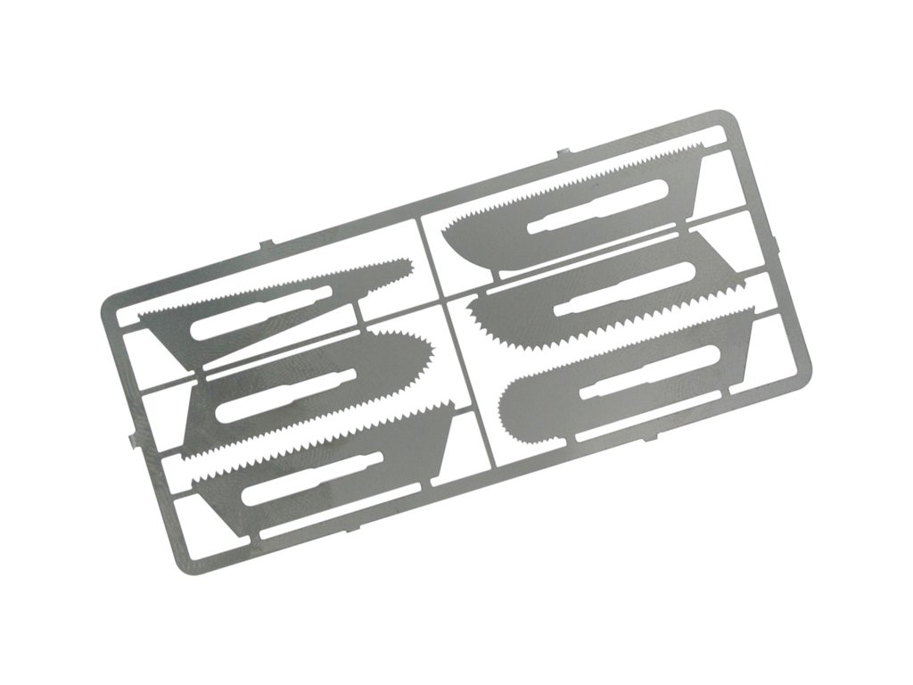 Sada obsahuje 4 velmi jemné pilové kotouče (tloušťka 0,24 mm). Vynikající pro přesné řezání plastů, dřeva a leptaných dílů. Čepele jsou vhodné pro malé rukojetě skalpelů. Lze zakoupit i sadu čepele s rukojetí (SH-PKN0009/K).