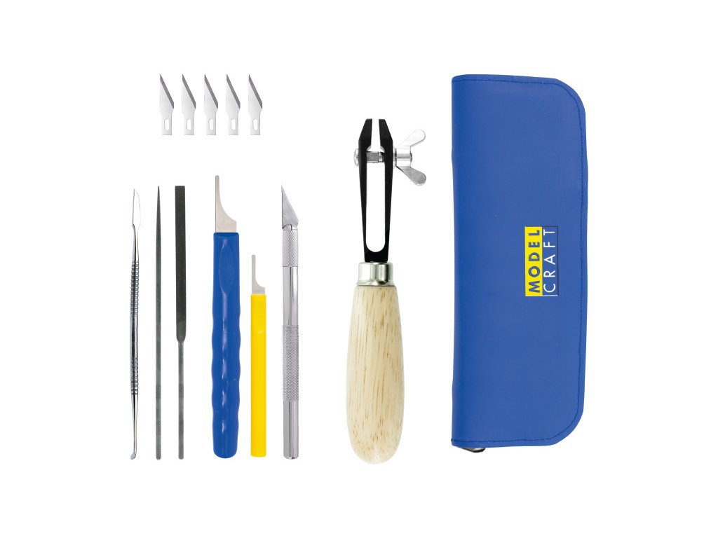Sada Modelcraft nářadí, které najde uplatnění v 3D tisku. Svěrka, nůž s náhradními čepelemi, odjehlovače, pilníky, mikro špachtle. vše v praktickém obalu.