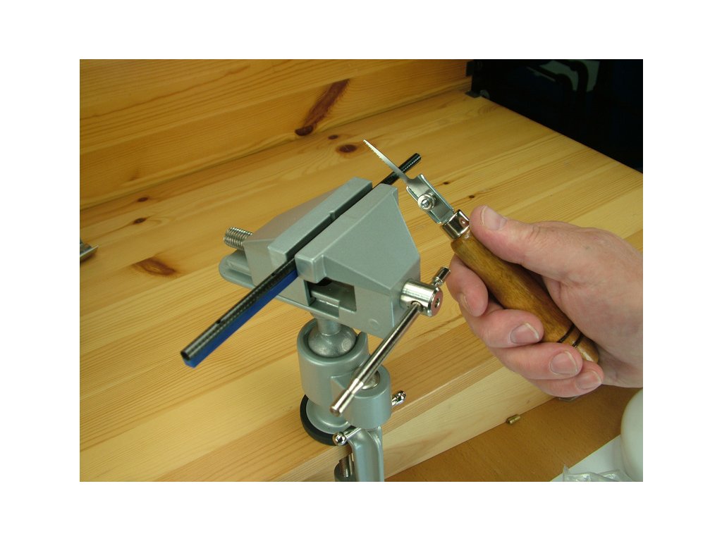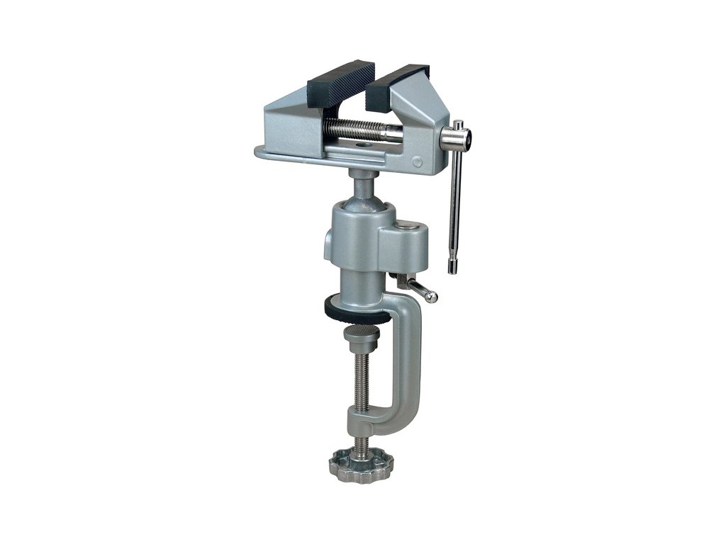 Modelcraft nastavitelný svěrák s pryžovými čelistmi šířky 75mm je umístěn na stavitelném kulovém čepu, takže si můžete nastavit součást do libovolné polohy. Je vyroben z tlakově litého hliníku a poniklované oceli. Otočná a naklápěcí hlava umožňuje manévrovat s obrobkem do nejpřístupnějšího úhlu a pak jej zamknout do polohy pomocí jediné páky. Pryžové odnímací čelisti slouží k držení jemných předmětů, k tomu mají na pracovní ploše jemné vroubkování. Svěrák se připevňuje na desku do tloušťky 55 mm, vrchní dosedací plocha má měkkou podložku proti poškrábání povrchu.