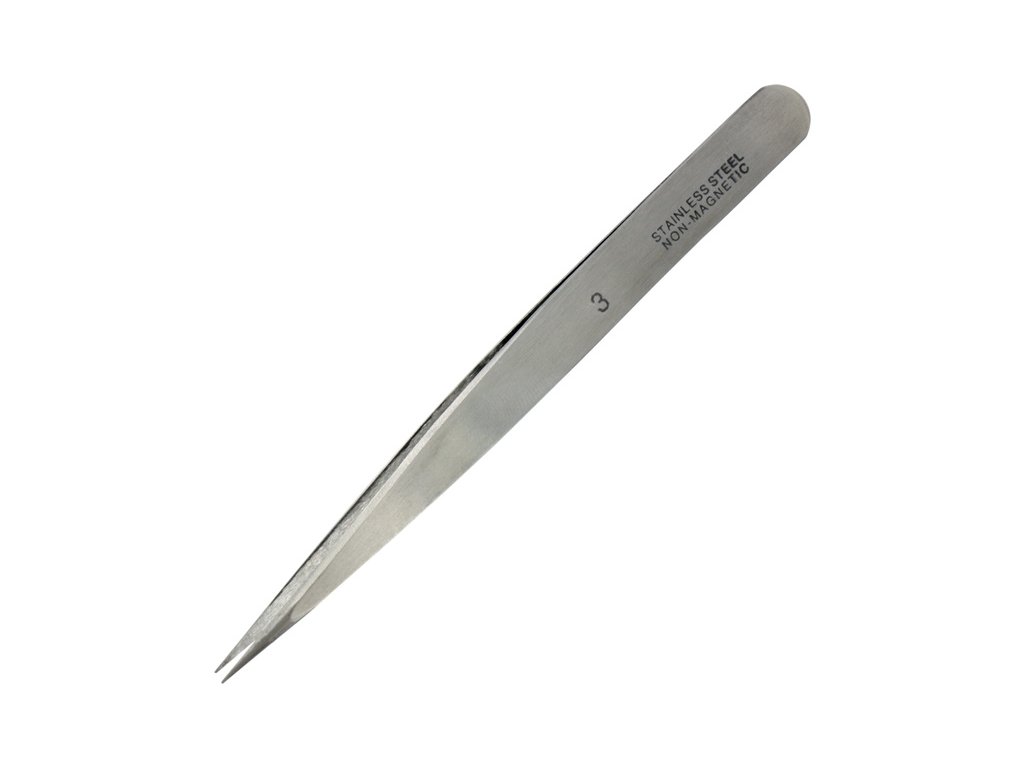 Modelcraft nerezová pinzeta úzká s tenkou špičkou pro přesné držení a umístění malých až mikroskopických dílů a součástí. Odolává kyselinám, je nemagnetická. Délka 120mm, šířka 10mm, hmotnost 21g.