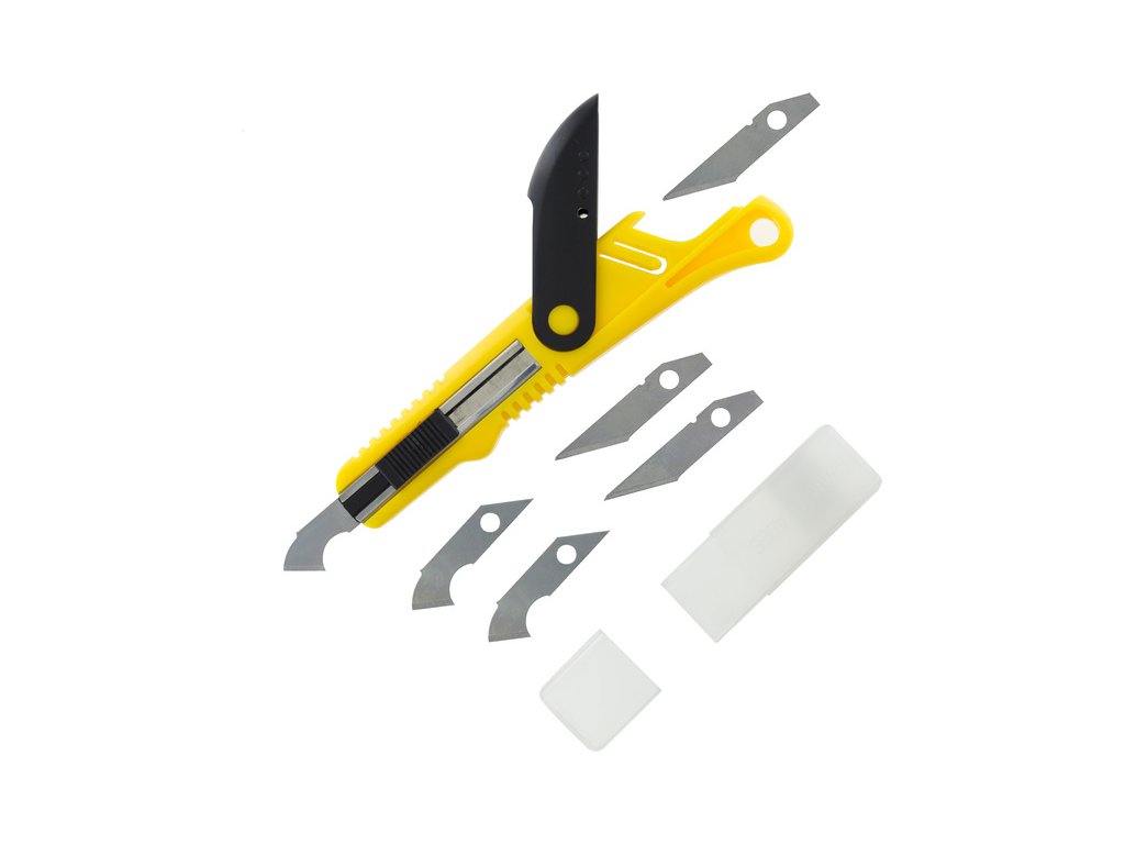 Modelcraft nůž na plasty je ideální pro řezání laminovaných plastů a akrylátů. Unikátní design řezací čepele zajišťuje čisté, hladké řezy a nezanechává žádné otřepy. 5 náhradních čepelí.
