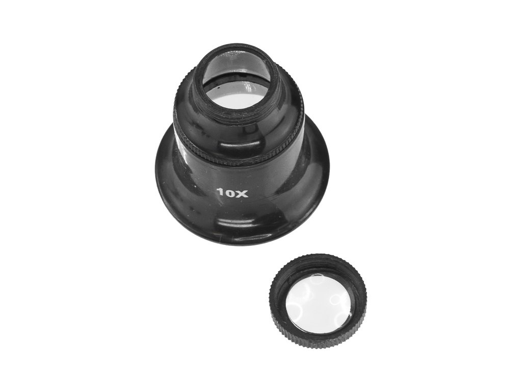 Modelcraft oční lupa duální 10x / 3x, pomáhá snížit namáhání očí při přesné práci s drobnými součástmi. Zvětšení 10x nebo při odstranění malého objektivu 3x. Délka 42mm, průměr 38mm / 20mm. hmotnost 10g.