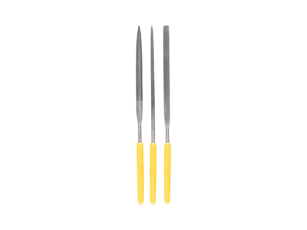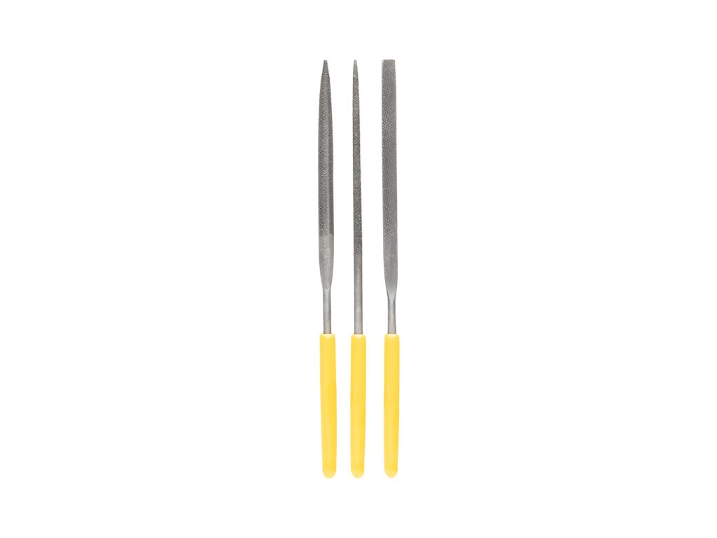 Sada precizních mikro pilníků Modelcraft - jehlové s gumovou rukojetí, pro přesnou práci. Obsahuje tři různé profily: plochý, půlkulatý a kulatý pro použití na různých tvarech. Ocelové kalené pracovní části.