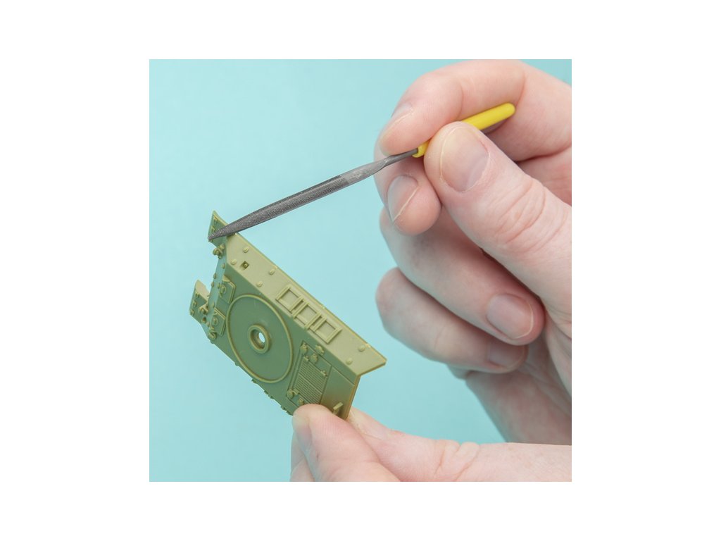 Sada precizních mikro pilníků Modelcraft - jehlové s gumovou rukojetí, pro přesnou práci. Obsahuje tři různé profily: plochý, půlkulatý a kulatý pro použití na různých tvarech. Ocelové kalené pracovní části. Délka 100 mm.