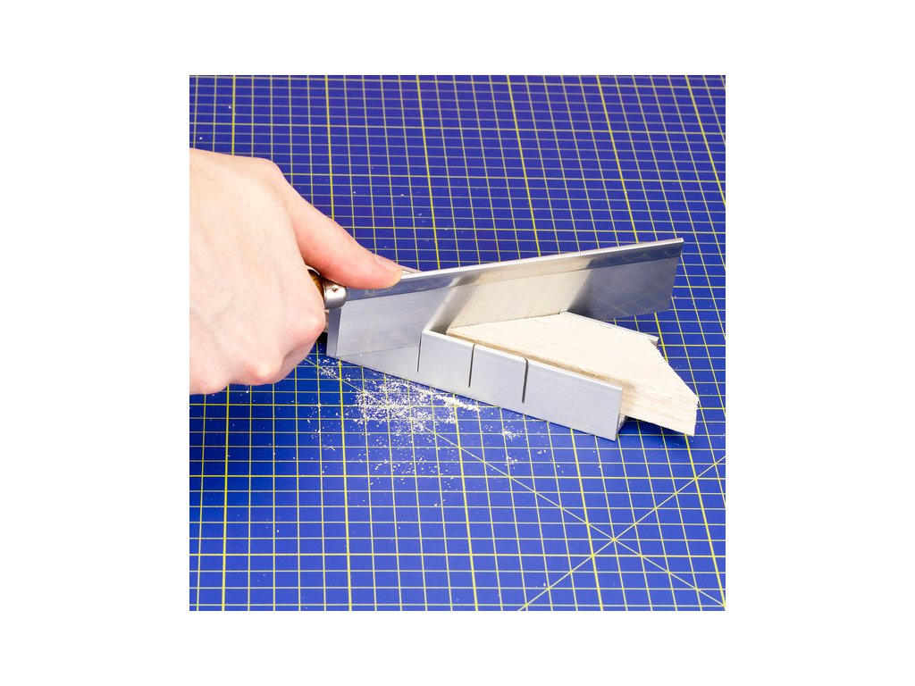 Modelcraft pokosnice hliníková vám pomůže přesně uřezat pravý úhel nebo řez pod úhlem 45°. Délka 140mm, řezaný materiál lze použít do tloušťky 44mm. Potřebujete si vyrobit rámeček? Použijte Modelcraft pokosnicic.
