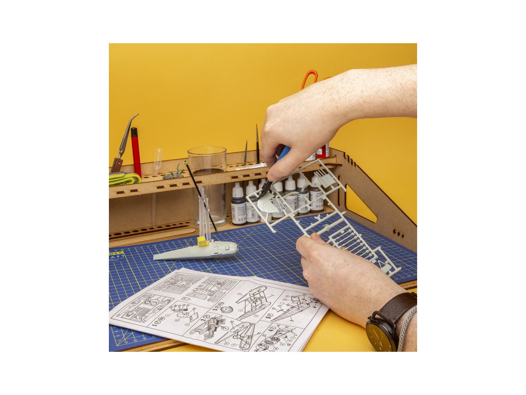 Modelcraft pracovní stanice poskytuje ideální prostor k modelářské práci, ať ji máte stole nebo třeba na klíně. K dispozici jsou i výřezy na drobné nástroje a pomůcky. Lze do ní vložit řezací podložku A3 SH-PKN6003