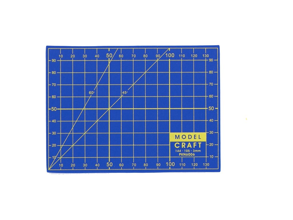 Modelcraft řezací podložka ve velikosti A6 144x105mm) je vyrobena z 3-vrstvého sendvičového PVC, ve kterém neznikají trhliny ani deformace. Protiskluzový povrch umožní bezpečné řezání, podložka chrání břity čepelí a zajistí přesný řez. Podložky se vyrábí ve velikostech A1, A2, A3, A4, A5 a A6.