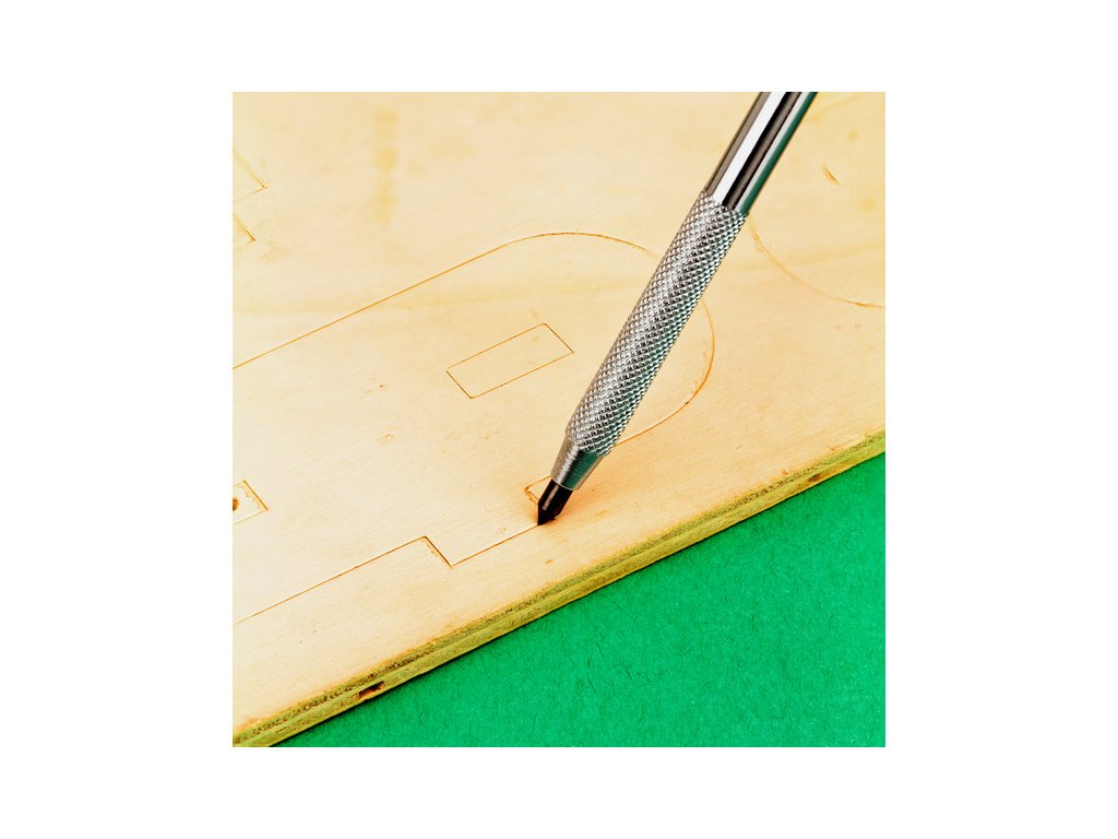 Modelcraft rýsovací jehla s hrotem se slinutých karbidů. Je ideální pro rýsování do měkkých i tvrdých kovů, i měkkých materiálů, stejně jako plastů a dřeva. Rýhovaná rukojeť o průměru 7 mm pro pohodlné uchopení.