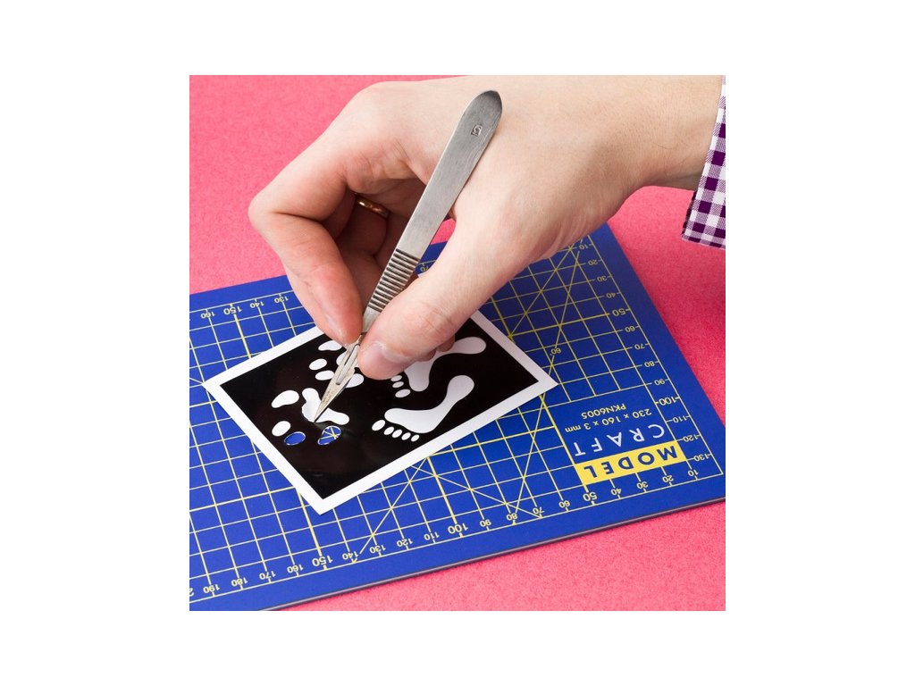 Skalpel Modelcraft s rukojetí z nerezové oceli, držákem čepelí varianta #3 a s pěti profesionálními čepelemi Swann Morton z uhlíkové oceli typu #11. Jedná se o nástroj pro modelářské, řemeslné a výtvarné činnosti na řezání, vyřezávání, škrábání a rýsování materiálů jako je papír, karton, fólie, plasty, akrylát, balza a další.