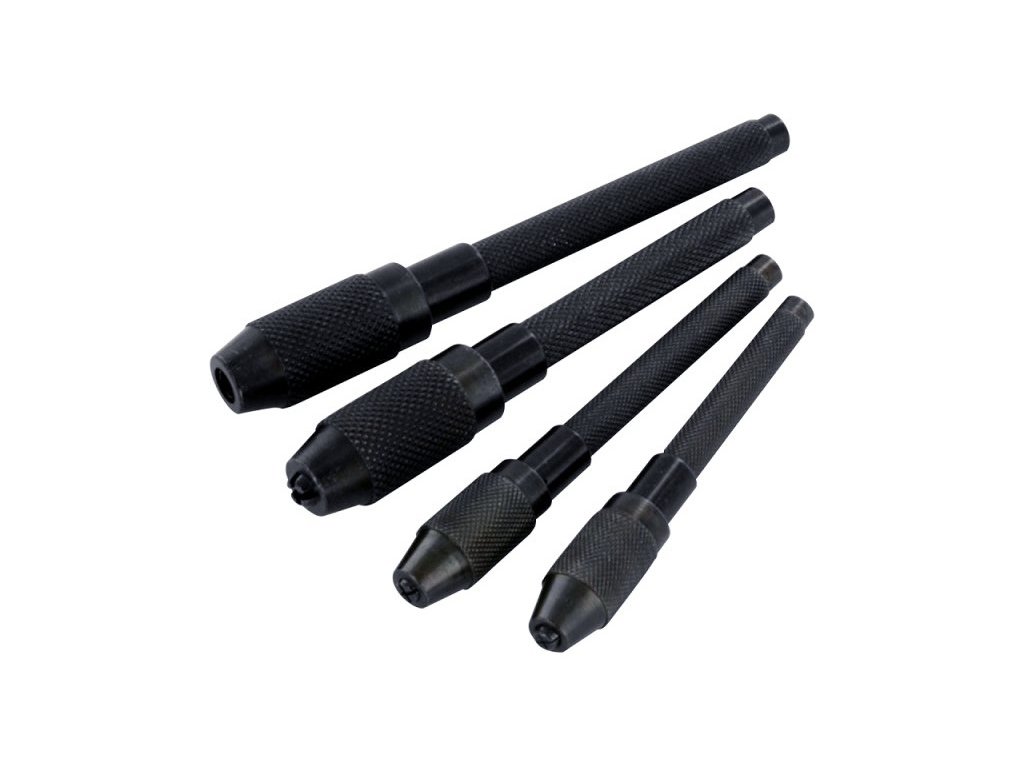 Ruční Modelcraft sada 4ks sklíčidel pro vrtáky o průměru 0,1mm - 4,8mm se používá se k ručnímu vrtání malých a nejmenších otvorů do plastu, dřeva atd. s velkou mírou kontroly a přesností. Má vroubkované válcové tělo pro pohodlné držení prsty, sklíčidla se dotahují prsty, není určeno pro strojní použití.