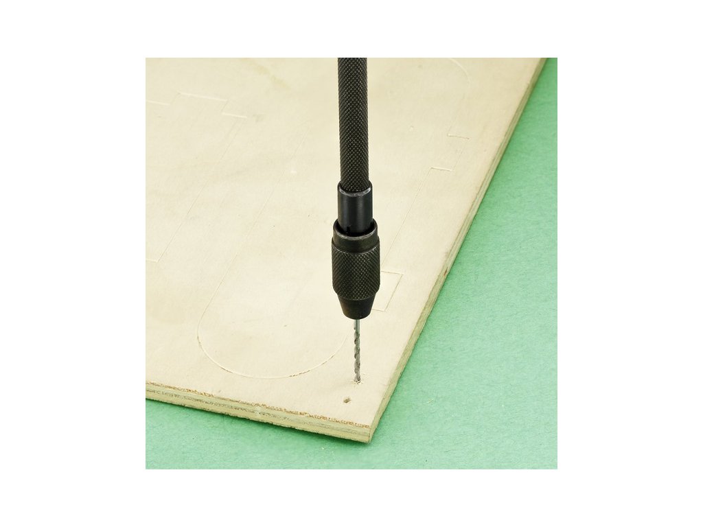 Ruční Modelcraft sklíčidlo pro vrtáky o průměru 1,3mm - 3,1mm se používá se k ručnímu pomalému vrtání malých otvorů do plastu, dřeva atd. s velkou mírou kontroly a přesností. Má vroubkované válcové tělo pro pohodlné držení prsty, sklíčidlo se dotahuje prsty, není určeno pro strojní použití.