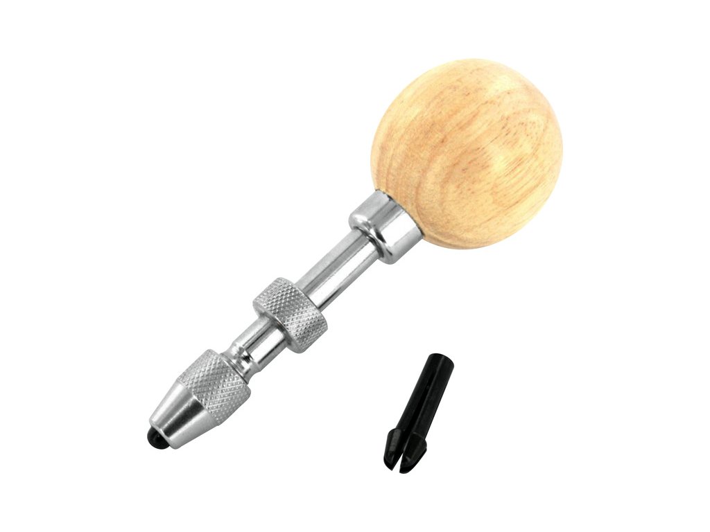 Modelcraft univerzální rukojeť s dřevěnou rukojetí, která se vejde do dlaně a kleštinami 2,3 a 3mm. Je ideální pro použití s vrtáky, závitníky a brousky, pro vystružování, vrtání nebo pilování.