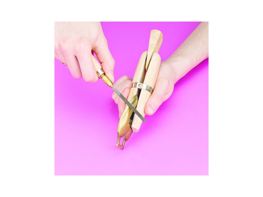 Modelcraft univerzální dřevěná rukojeť pro jehlové pilníky se dobře drží a práce je s ní snazší. Upínací kleština se šroubovací hlavičkou pro upnutí průměru dříku 3mm - 3,7mm. Délka 115 mm, průměr 26 mm, hmotnost 36 g, hlavička má průměr 10 mm.