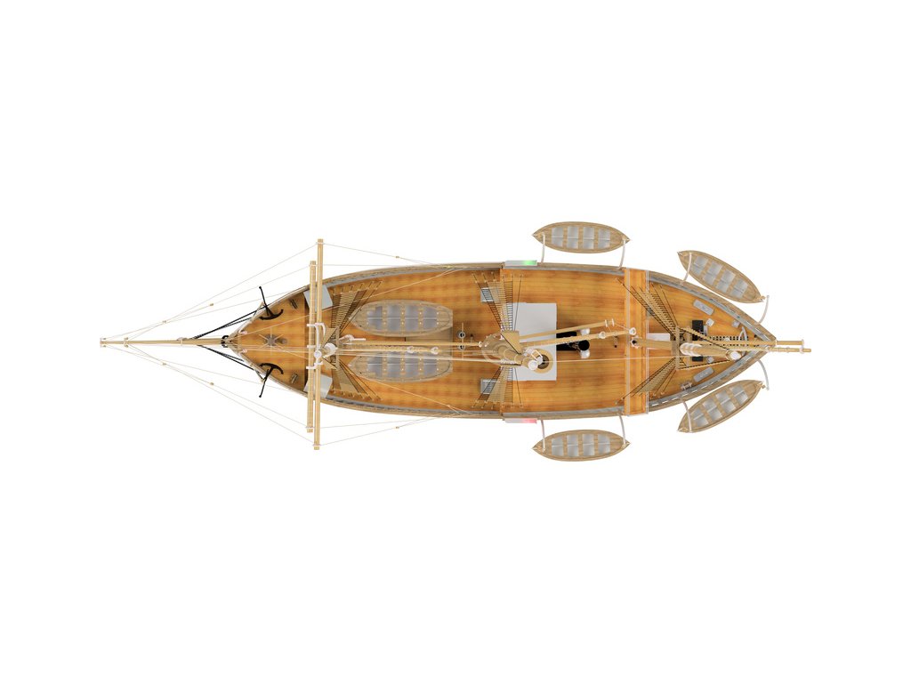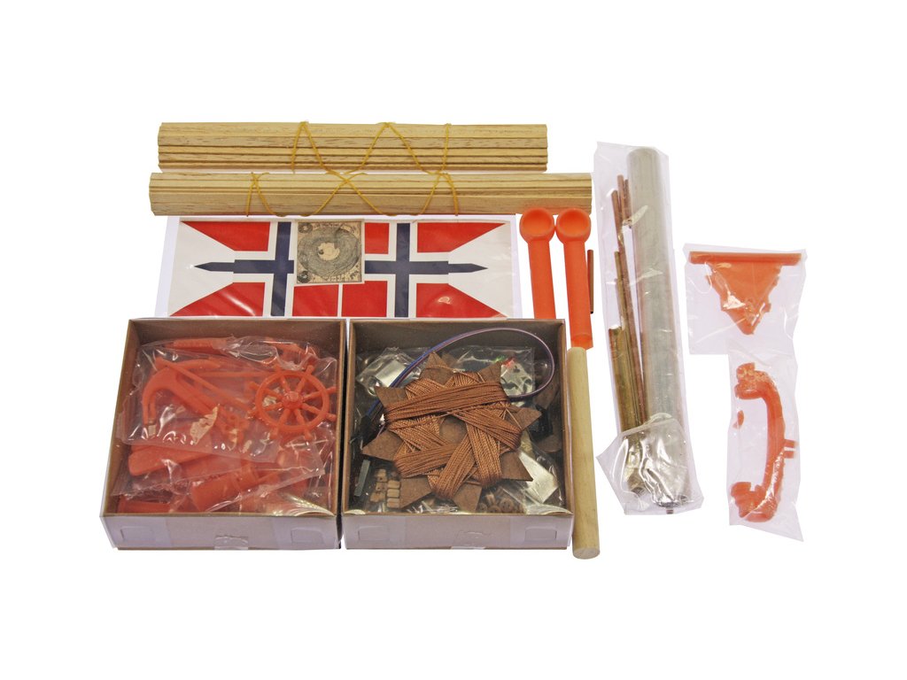Balení obsahuje laserem řezané překližkové díly na několika deskách, maketové doplňky z kovu, dřeva a plastu, sadu plachet, sada příslušenství vyřezaná laserem v plastu, vlajka, motouz na lanoví, manuál psaný manuál obrazový EN.