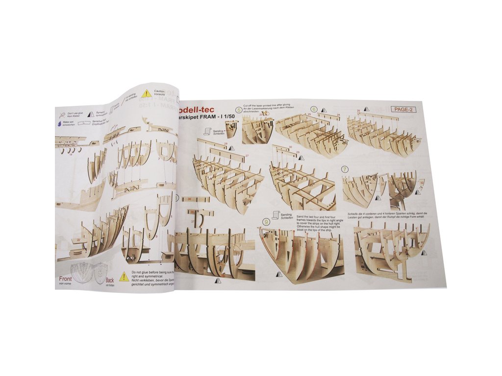 Stavebnice modelu polární lodi Fram I Polarschiff z roku 1893, v měřítku 1:50. Délka modelu lodi je 790mm, stavba převážně ze dřeva s drobnými doplňky, součástí je stavební plán.