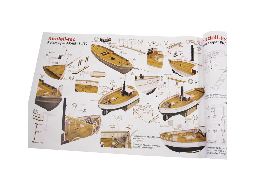 Stavebnice modelu polární lodi Fram I Polarschiff z roku 1893, v měřítku 1:50. Délka modelu lodi je 790mm, stavba převážně ze dřeva s drobnými doplňky, součástí je stavební plán. Loď, se kterou norští polárníci prozkoumávali Arktidu a Antarktidu v letech 1893 až 1912.