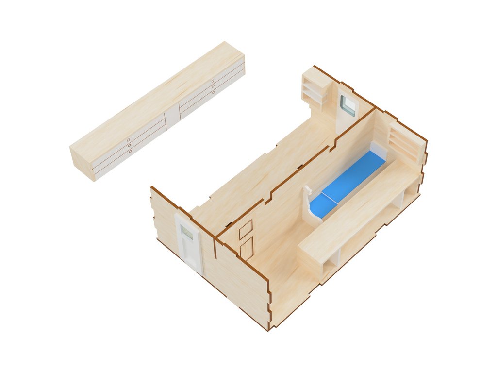 Po otevření víka krabice naleznete dřevěné díly modelu z překližky, drobné součásti uzavřené v sáčcích, sadu výkresů a manuál.