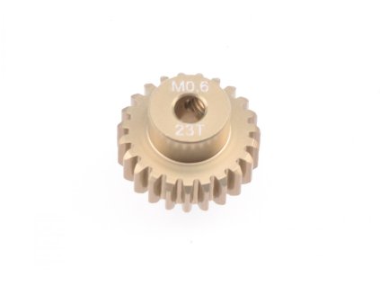 Krátké provedení, materiál tvrzená ocel, 23 zubů, modul ozubení 0.6M. Pro hřídel motoru o průměru 3.17 mm (1/8 in)....