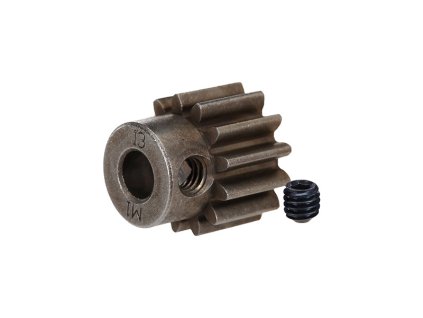 Traxxas pastorek na hřídel 5 mm s 13 zuby a modulem ozubení 1 mm pro RC modely aut. Vyrobeno z sintrované oceli. Součástí balení je červík.