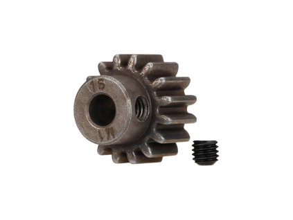 Traxxas pastorek na hřídel 5 mm s 16 zuby a modulem ozubení 1 mm pro RC modely aut. Vyrobeno z sintrované oceli. Součástí balení je červík.