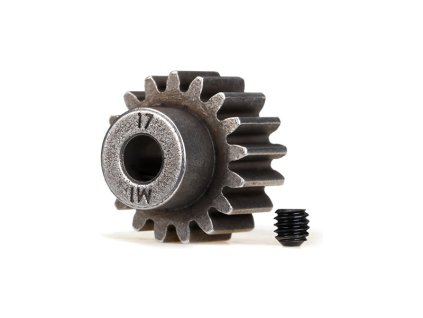Traxxas pastorek na hřídel 5 mm s 17 zuby a modulem ozubení 1 mm pro RC modely aut. Vyrobeno z sintrované oceli. Součástí balení je červík.