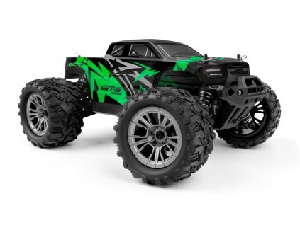 Model Monster truck v měřítku 1:16 s pohonem všech kol 4x4, poháněný střídavým motorem vč. RC volantové soupravy 2,4 GHz a pohonného akumulátoru. Voděodolný regulátor a přijímač.
