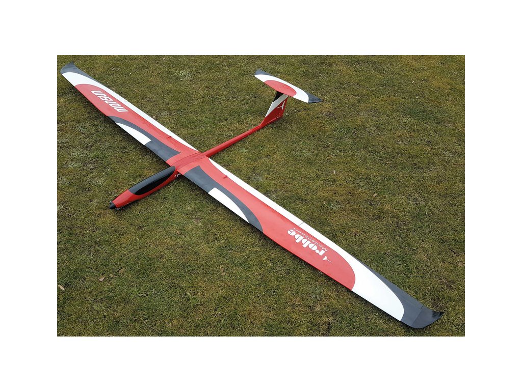 RC model výkonného termického větroně Monsun V2 o rozpětí 3m. Laminátový trup, křídlo má pěnové jádro, potah dýhou Abachi a fólií Oracover, křídlo je potaženo dýhou Abachi a fólií Oracover, průběžný sendvičový nosník (uhlík-borovice-uhlík) pro maximální tuhost v ohybu. Hotové vztlakové klapky. Verze PNP s motorem, servy včetně kabelů, hliníkovým kuželem a sklopnou vrtulí.