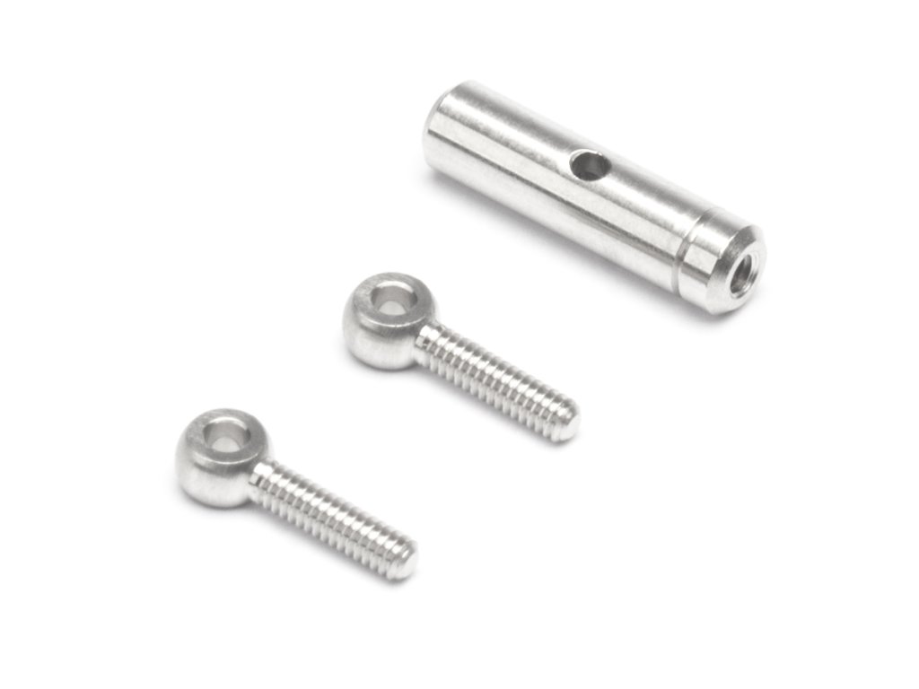 Mosazný poniklovaný napínák M2, délka 20-28mm, očka vnitřní vrtání 1,7mm, 10 ks.