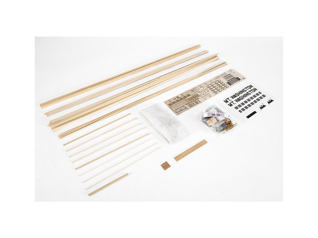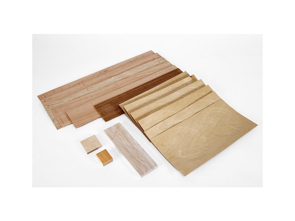 Stavebnice obsahuje: vakuově lisovaný trup, předseknuté a laserem vyřezávané překližkové díly, smrkové plaňky, předseknuté díly z mikropěnového PVC, vakuově lisované plastové díly, mosazné dráty a tyčovina, odlévané kovové díly a další maketové příslušenství, 2 řemenice a ozubený řemínek, stavební plán obsahující třípohledový výkres lodi a perspektivní nákresy jednotlivých kroků stavby, fotografická příloha zobrazující stavbu modelu a skutečnou loď, aršík samolepek, návod ke stavbě.