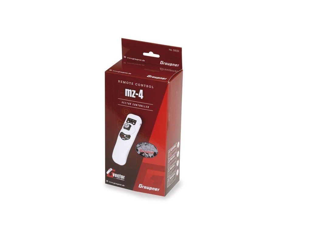 Ačkoli MZ-4 připomíná spíše joystick, jedná se o plnohodnotné dálkové ovládání 2,4 GHz. MZ-4 má paměť pro 10 modelů, které jsou již předem nastaveny pro různé modely řady VECTOR, ale které lze snadno přeprogramovat. Pohyb kniplu plynu, řízení serv a trim lze naprogramovat na vysílači pomocí kombinace kláves pro dvě letové fáze. Nastavení a kombinaci kláves najdete v příručce. MZ-4 má na spodní straně spoušťový spínač. Tím se aktivuje druhá letová fáze a poskytuje dodatečný výkon motoru a větší rozsah řízení.