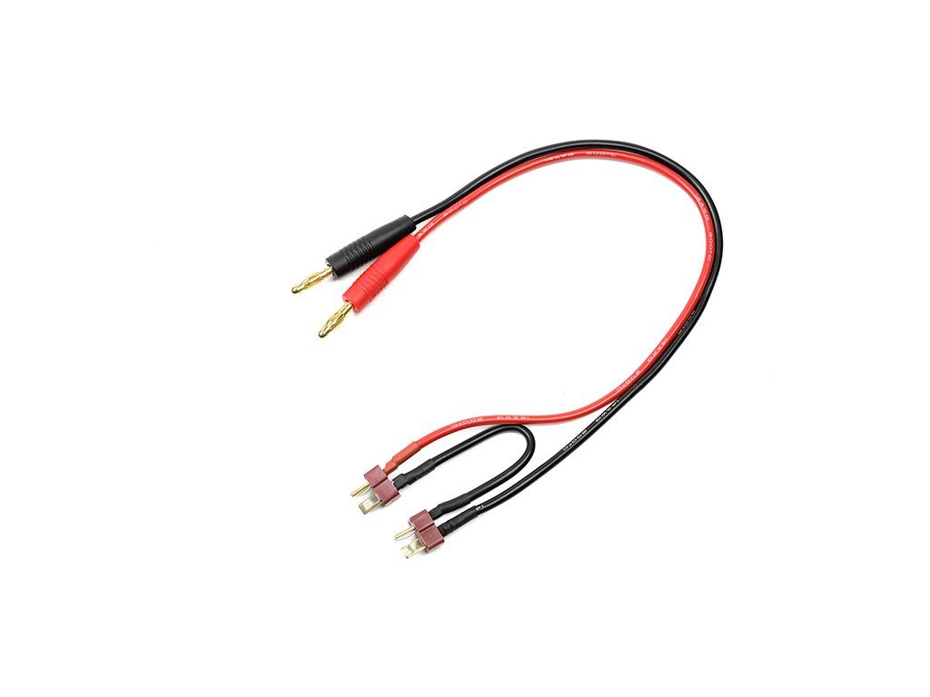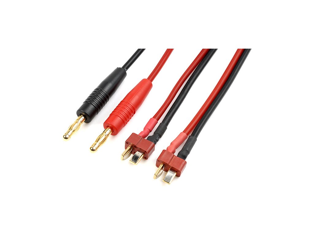 Nabíjecí kabel s banánky 4 mm a sériově zapojenými konektory Deans přístroj (samec), kabel 14AWG, délka 30cm. Pro připojení dvou baterií.