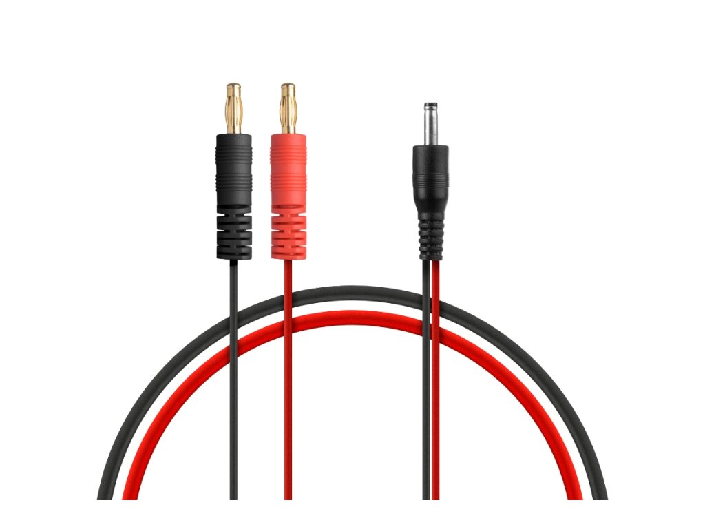 Nabíjecí kabel pro vysílač Futaba se 4mm banánky. Například pro 18SZ/16SZ/14SG/12K/10J/8J/6J/4PX/4PK atd. DC koncovka s vnějším průměrem 3,5mm, vnitřním průměrem 1,35mm a plusovým pólem na vnitřní straně.