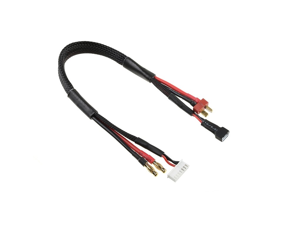Nabíjecí silikonový kabel 30cm v opleteném pouzdru. G4/6S XH konektory do nabíječky a na druhé straně T-DYN/2S XH. Použit byl 14Awg/2,5qmm silikonový kabel.