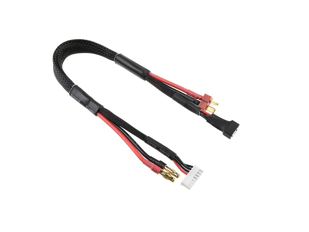 Nabíjecí silikonový kabel 30cm v opleteném pouzdru. G4/6S XH konektory do nabíječky a na druhé straně T-DYN/3S XH. Použit byl 14Awg/2,5qmm silikonový kabel.