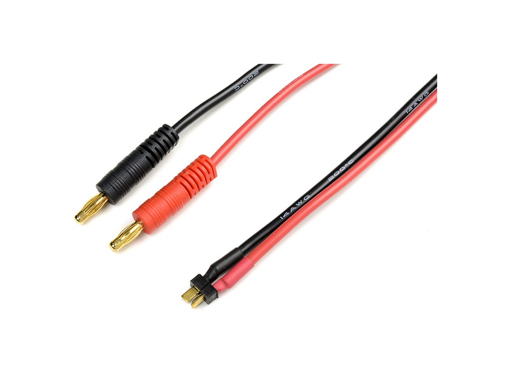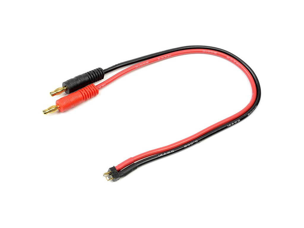 Nabíjecí kabel s banánky 4 mm a konektorem Mini Deans, průřez kabelu 14AWG, délka 30cm.
