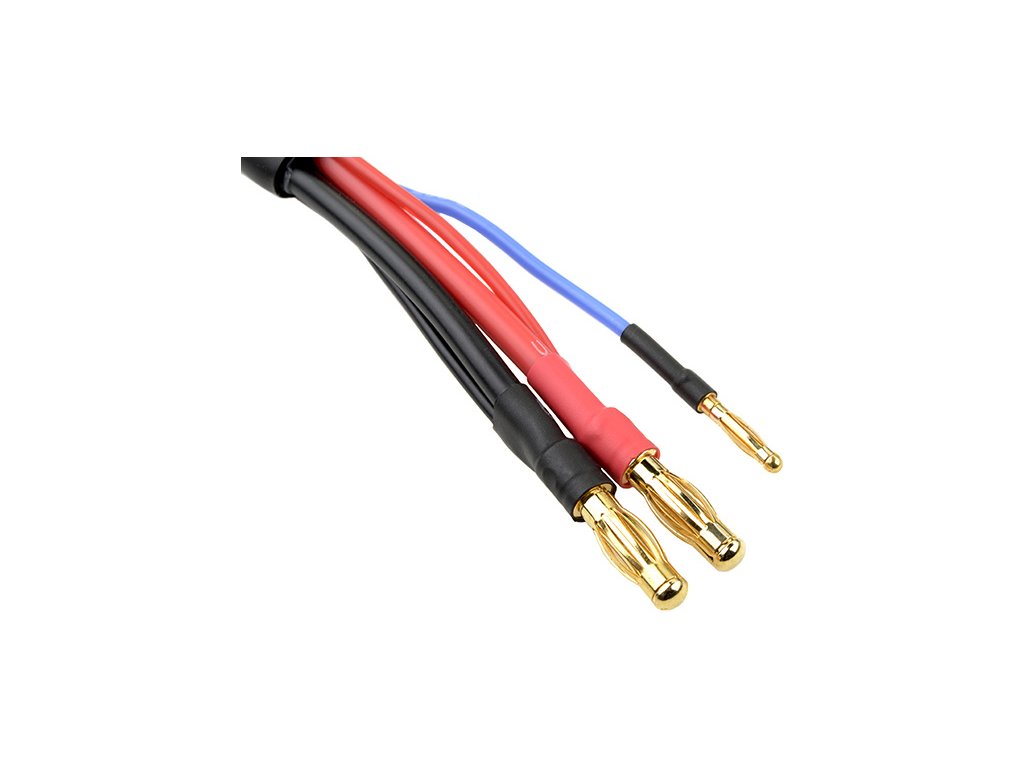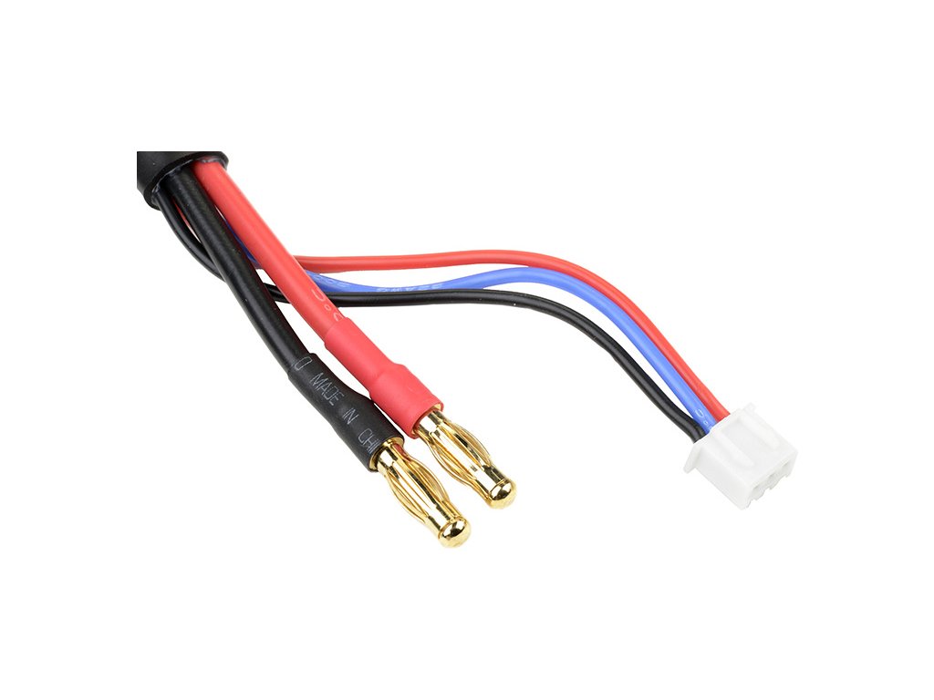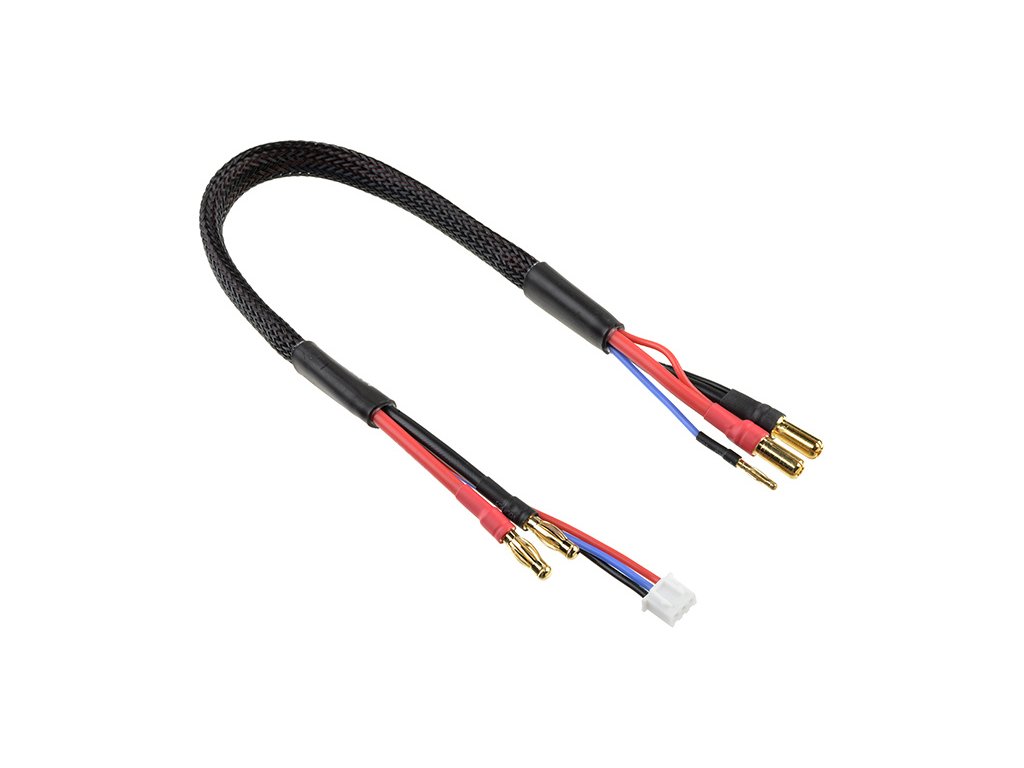 Nabíjecí kabel s balačním konektorem 2S XH a banánky 4mm s kolíky do baterie a kolíkem 2mm, délka kabelu 30cm.