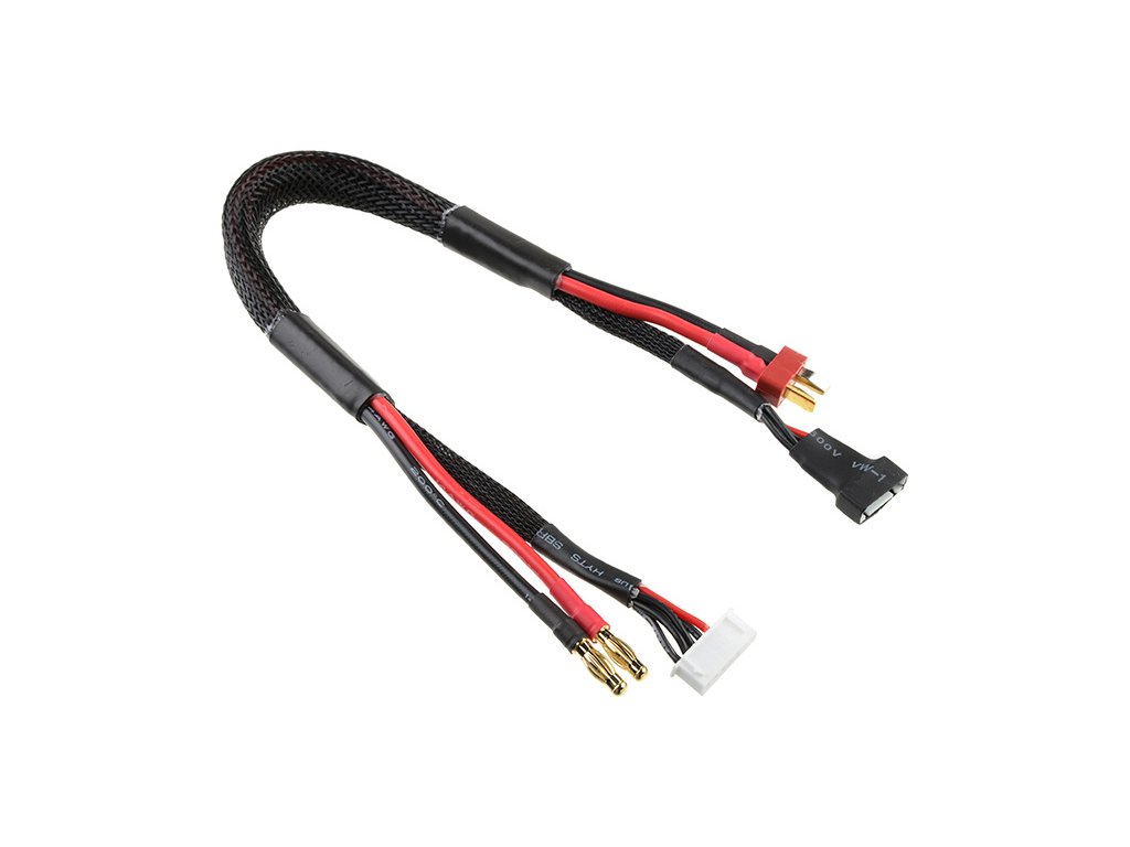 Nabíjecí kabel s kolíky 4mm a konektorem Deans / balanční kabel 4S XH / 6S XH , délka 30cm.