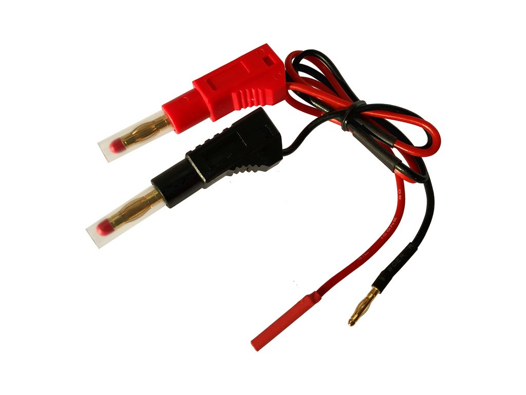 Nabíjecí kabel s banánky 4mm a párem konektorů o průměru 2mm (samice červená +) a (samec černý -).