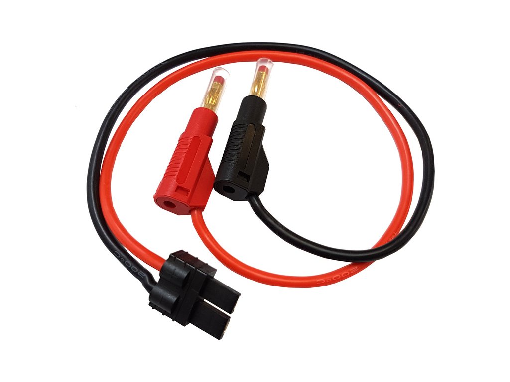 Nabíjecí kabel s konektorem Traxxas přístroj (samec) a 4 mm banánky s bezpečnostním krytem, který zamezuje náhodnému zkratu.
