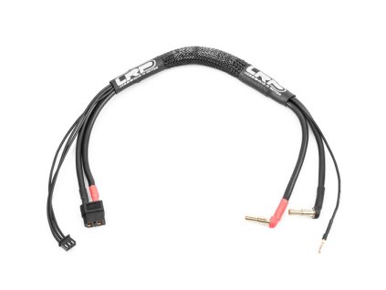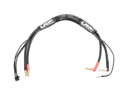 Nabíjecí kabel se 4 mm zlacenými banánky na straně nabíječe a zlacenými konektory LRP 3,5 mm.