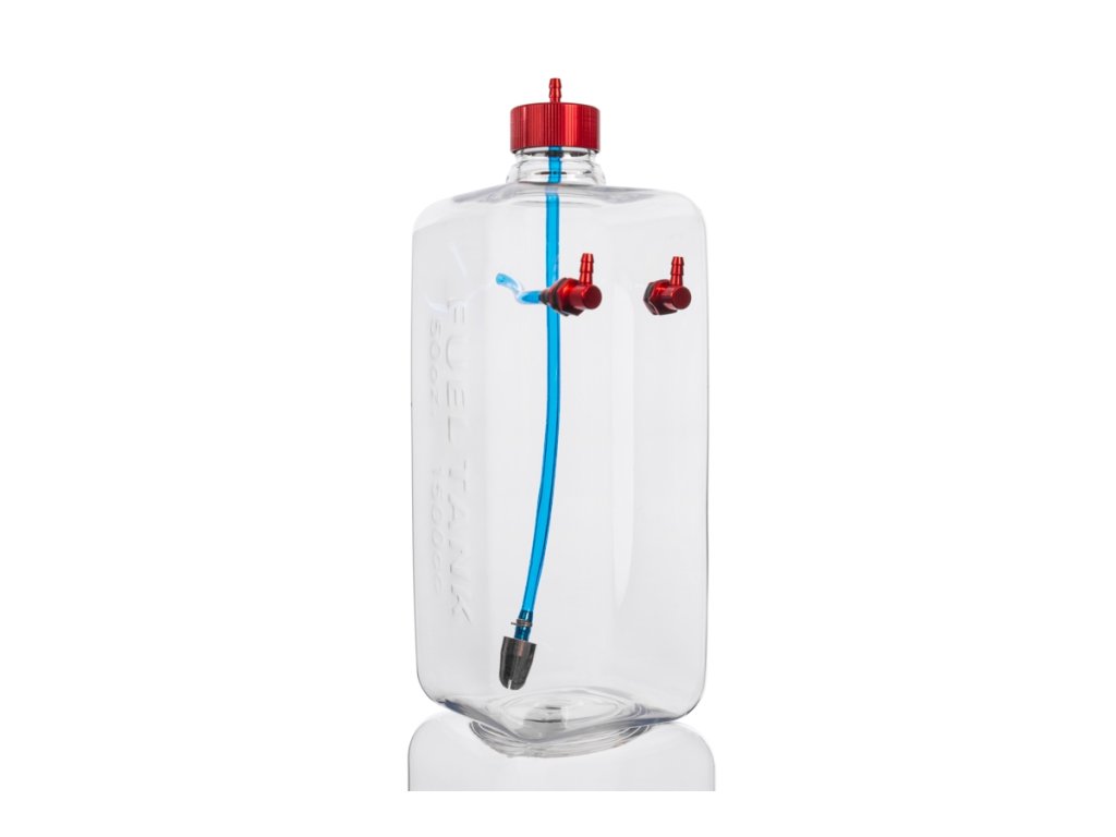 Palivová nádrž FlowMaster 1500 ml z odolného čirého plastu pro benzín. Eloxovaná hliníková zátka s integrovaným sacím hrdlem, mosazné fitinky a sací závaží. Rozměry 241,5x102x89 mm.Doplňkové parametry