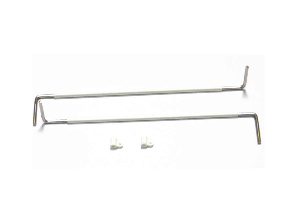 Náhon křidélek pravý-levý, délka celková 170mm, průměr drátu 2,5mm, na jedné straně závit M3 s plastovými koncovkami. Uloženo v plastové trubičce prům. 4mm, délky 135mm.