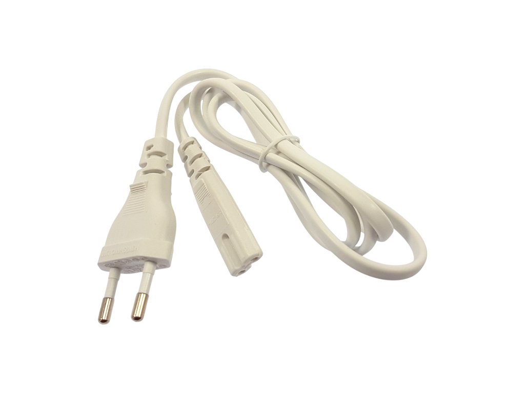 Napájecí síťový kabel 230V 2pinový, délka 1m, barevné provedení - bílá. Průřez vodičů 2x 0.75 mm².