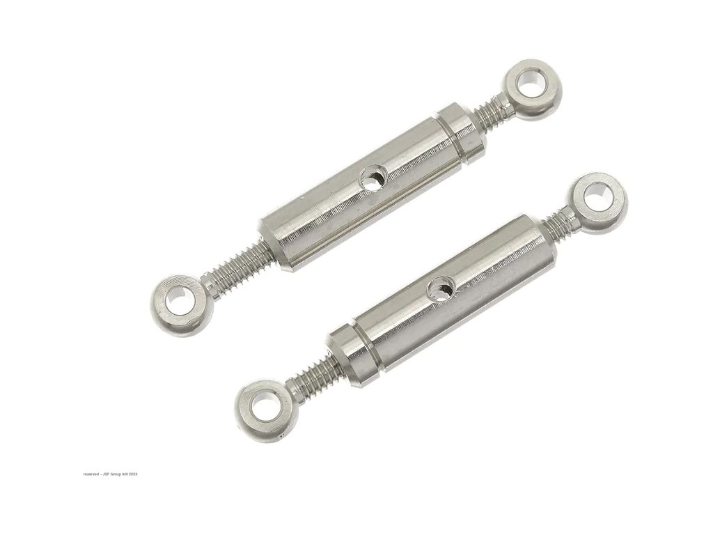 Napínák lanka mosazný M2 L/P. Balení obsahuje 2 kusy. Průměr těla 4mm, délka těla 15mm, Délka koncovky se závitem M2 - 11mm, otvor 1,5mm.