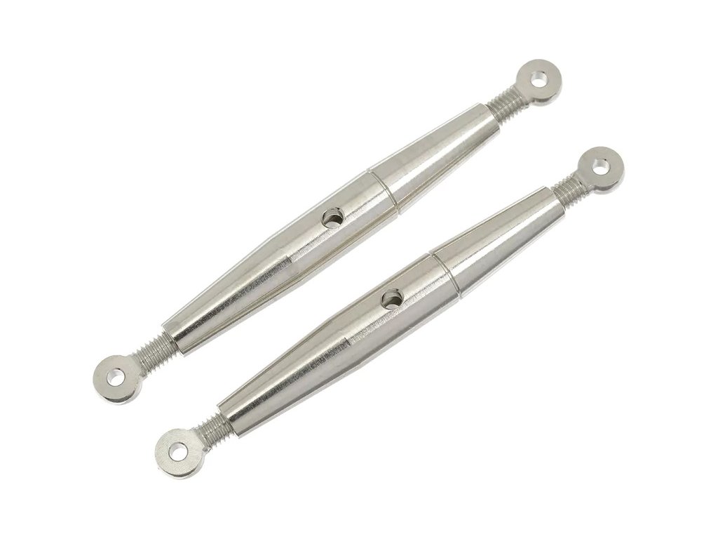 Napínák lanka mosazný se závity M3 L/P. Balení obsahuje 2 kusy. Průměr těla 6mm, délka těla 40mm, Délka koncovky se závitem M3 - 21,5mm, otvor 1,5mm v očku 5mm.