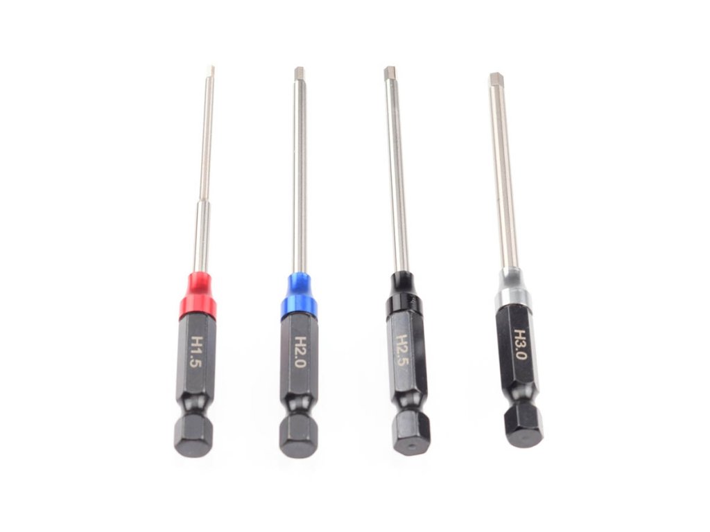 Sada klíčů/Bitů RUDDOG je ideální sada pro všechny akumulátorové šroubováky. Díky standardnímu 1/4palcovému nástavci se hroty hodí pro všechny běžné akumulátorové šroubováky, což ještě více usnadňuje šroubování na vašem modelu. K dispozici jsou dvě sady: buď s šestihrannými hroty 1,5 mm, 2,0 mm, 2,5 mm a 3,0 mm, nebo jako sada s šestihrannými hroty 1,5 mm, 2,0 mm a 5,5mm a 7,0mm ořechovými/nástrčkovými hroty.
