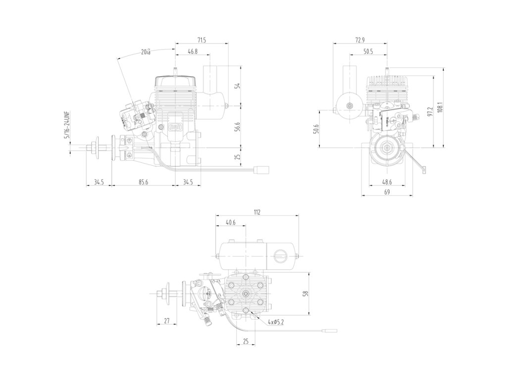Dvoutakty si můžete pořídit v široké škále kubatur od malého 9 ccm, který v modelu nahradí „žhavíka“ 6,5-8,5 ccm, po 130 ccm dvouválec do obřího modelu.